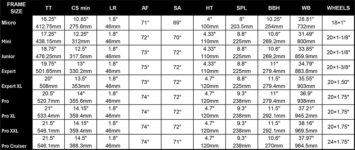 The new Edge also features a two tone paint design, along with waterbed decals that are under the clear coat. Using some of the best brands in BMX to build up the Edge, we feature Pro level parts on various sizes of the Edge including Tioga tires, Chase 2 Piece 24mm Cranks, Insight Chain Ring, Shimano Brakes, a Triple Clutch System cassette hub, KMC Chains, and a Pivotal Seat and Seat Post. With 9 bike sizes offered, the Edge line up gives you a full range of size options for just about any size / age racer.
