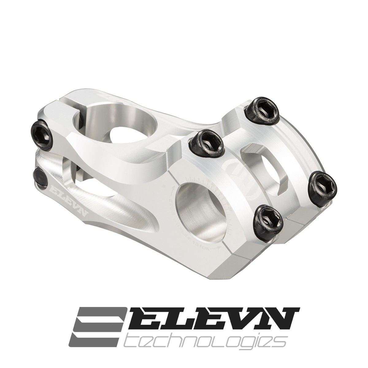 The new 22.2 Elevn Overbite Stem is one of the lightest available for BMX racing today! Designed with detail to attention in mind, the Elevn stem features smooth rounded edges and beveled sides on its top cap mounting system , laser etched graphics and a etched handlebar adjustment gauges. This 6061-T6 CNC’d stem was designed to have maximum clamping power, while being as minimal as possible, while being strong enough for todays top Pro riders to ride with confidence.