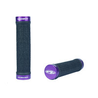 The Answer Mini Lock-On grips are molded from a soft rubber compound with repeating Answer logo pattern for comfort and control. The aluminum lock rings feature laser-etched Answer logos and help keep the grips in one place while easing installation and removal.