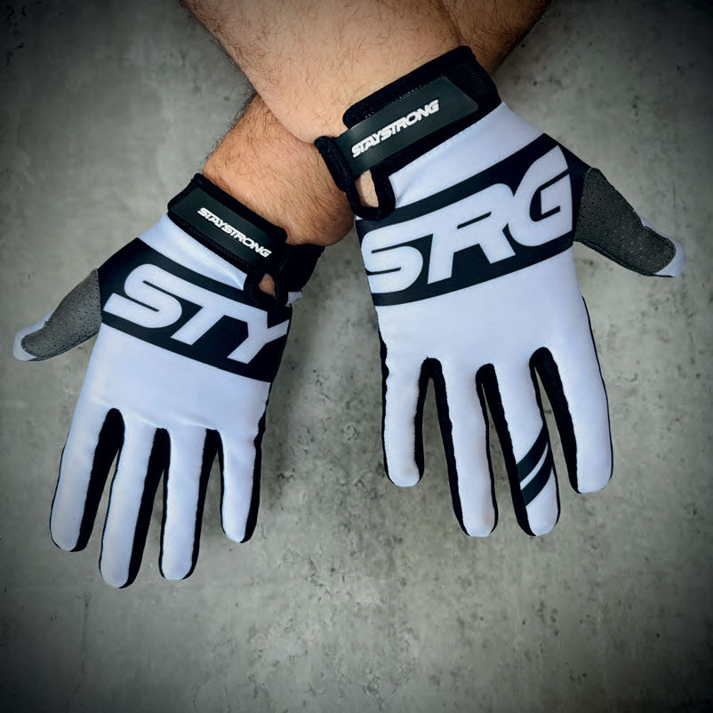 Stay Strong's lightweight, premium quality BMX/MTB gloves feature an updated Clarino fabric palm to provide grip, durability and ventilation, a soft lycra back for improved comfort, stretch and closer fit and silicone print fingers to help ensure maximum grip on the brake lever. All gloves come with an adjustable wrist strap for extra comfort.
