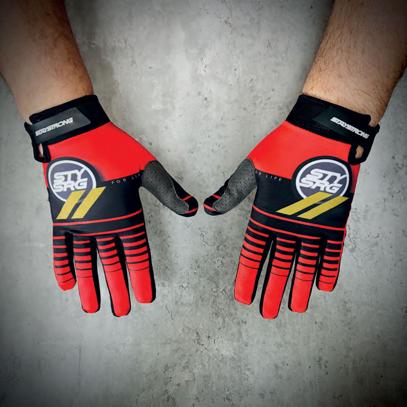 Stay Strong's lightweight, premium quality BMX/MTB gloves feature an updated Clarino fabric palm to provide grip, durability and ventilation, a soft lycra back for improved comfort, stretch and closer fit and silicone print fingers to help ensure maximum grip on the brake lever. All gloves come with an adjustable wrist strap for extra comfort.