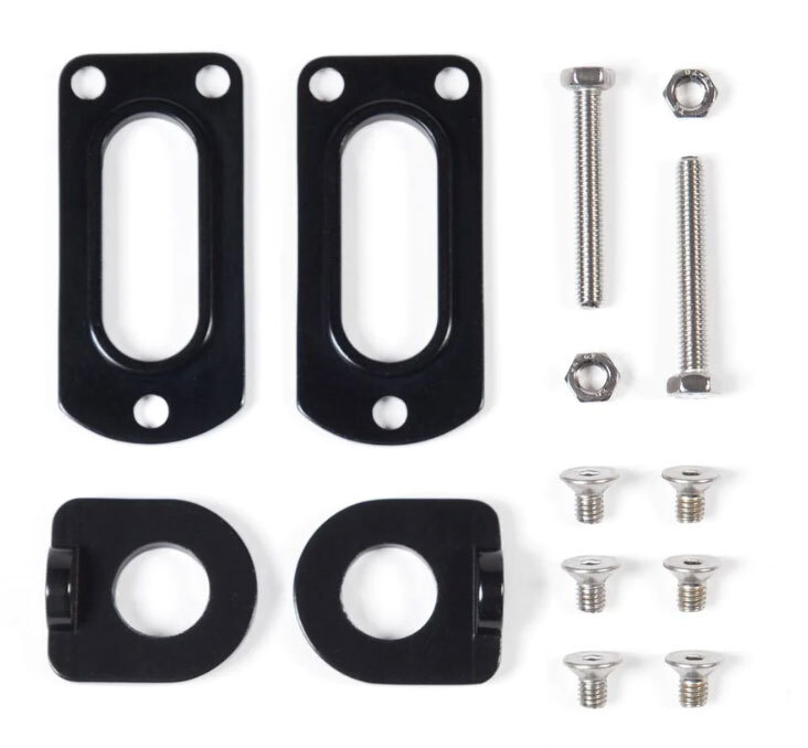 Replacement dropout kit for Stay Strong V3 and V4 frames, adapts frame dropout to 10, 15 or 20mm. Includes mounting plate/ bolts and chain tensioner bolt.